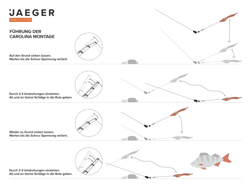 Der Haken aus Carbon-Stahl ist dabei extra gehärtet, ultra scharf und robust. Zudem wurde abriebfestes Fluorocarbon sowie ein schnell sinkendes und umweltfreundliches Tungsten Weight verwendet. Jedes Stück ist handgefertigt, um hochwertige Knoten sicherzustellen.Eine vorgefertigte Carolina Montage, um direkt loszulegen100% bleifrei und umweltfreundlich durch die Verwendung von Tungsten GewichtenUltrascharfe High-End Haken aus Carbon Stahl reduzieren Fehlbisse nahezu komplettHandgefertigt um hochwertige Knoten sicherzustellenDetails: 8.8g Tungsten Bullet Weight, 0.235 Vorfach aus 100% Fluorocarbon 3.6kg, Offset Haken Grösse 2, Länge 85cm