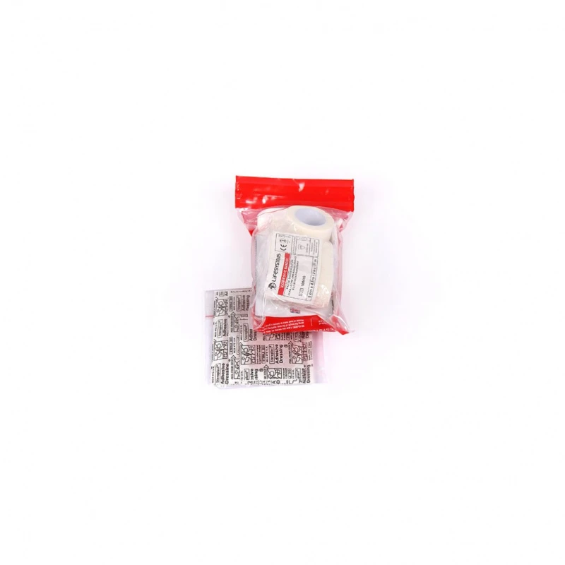 Erste-Hilfe-Kit mit wichtiger Ausrüstung für die meisten kleineren Verletzungen, die auftreten können. Der Inhalt ist in einer wasserdichten Loc-Top-Tasche geschützt.